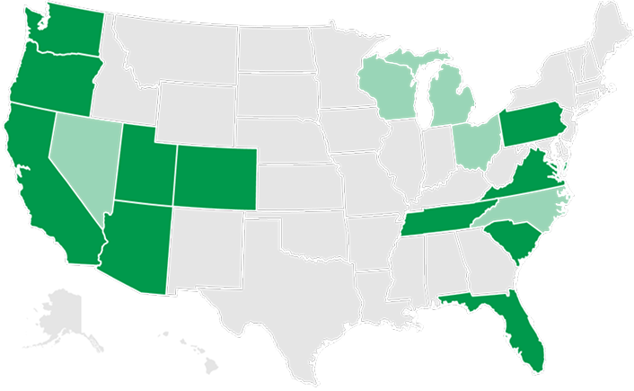 We are currently working with homeowners in the following states: Arizona, California, Colorado, DC, Florida, Oregon, Pennsylvania, South Carolina, Tennessee, Utah, Virginia and Washington State. More states coming soon!