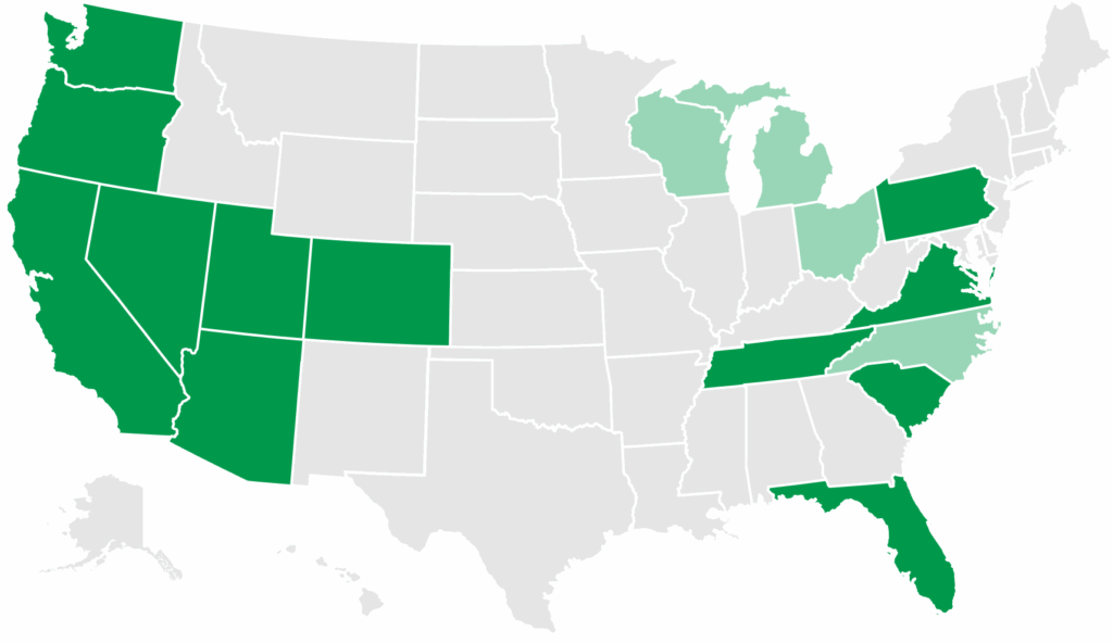 We are currently working with homeowners in the following states: Arizona, California, Colorado, DC, Florida, Nevada, Oregon, Pennsylvania, South Carolina, Tennessee, Utah, Virginia and Washington State. More states coming soon!